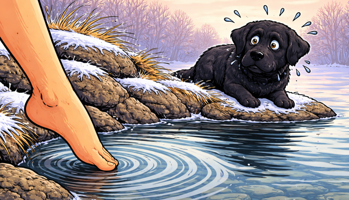 Du willst kein Held sein. Dein Hund übrigens auch nicht – der bleibt klug am Ufer stehen und schaut dich an, als hättest du den Verstand verloren. Du gehst trotzdem ins Wasser.